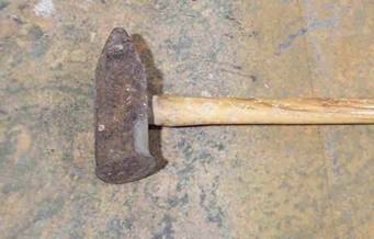 Also called a stone maul or stone splitter. It is used for splitting large slabs of stone. Use of the Slab Splitter is a two-person operation. One person holds the Slab Splitter angled on its edge, set in place along the line where the stone is to be split. The other person then hits it with the striking hammer. With use, the breaking edge of the Slab Splitter will wear down. This tool is not meant to be swung or used as a hammer.