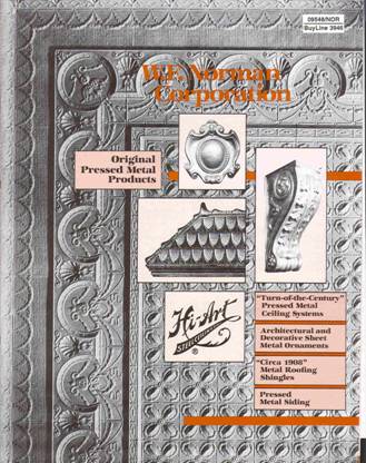 William Franklin Norman had been selling tin ceilings for an eastern company when he decided to open his own factory. In 1892, W.F. Norman opened its doors in Nevada, Missouri. By 1909, their catalog featured seventy pages of “Hi-Art” designs. They use that same catalog today.